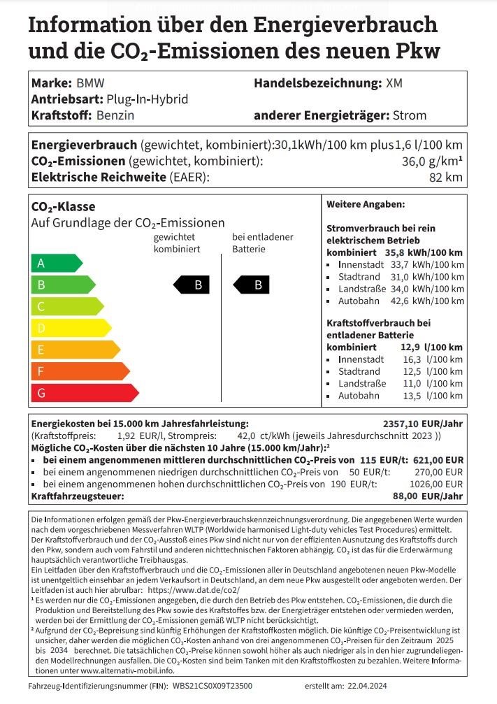 30,1 kWh/100km und 1,6 l/100 km (kombiniert, gewichtet, WLTP), 36 g CO2 / km (kombiniert, gewichtet, WLTP), CO2-Klasse: B, Elektrische Reichweite: 82 (EAER) | Moers-Hülsdonk
